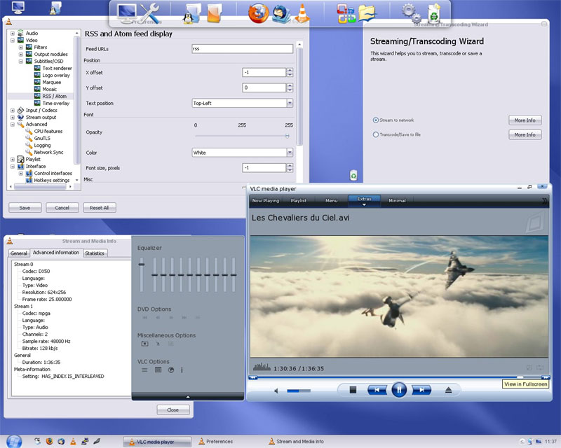 Suporta majoritatea formatelor audio si video (MPEG-1, MPEG-2, MPEG-4, DivX, mp3, ogg, ...) dar si DVD-uri, ... |