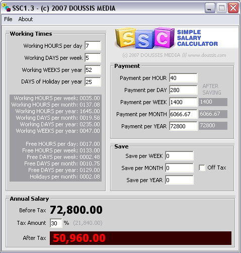 Calculeaza-ti veniturile anuale, lunare, zilnice si pe ora bazate pe orele muncite. Programul poate calcula si cati bani poti econmisi punand o anumita suma deoparte si poate calcula si cat timp ...