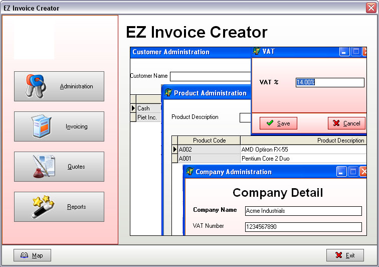 Acest program iti creeaza facturile pentru produsele sau serviciile furnizate de compania ta. Este usor de folosit si de personalizat poti de asemenea sa introduci si cota de TVA.
